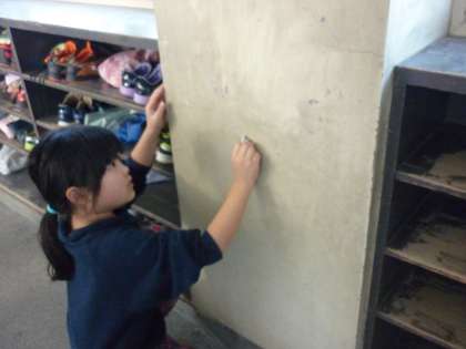 教室や廊下の壁をピカピカに磨き上げました。普段気にしないような,細かいところまで注意して掃除していました。