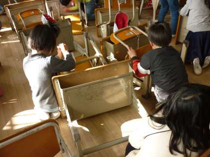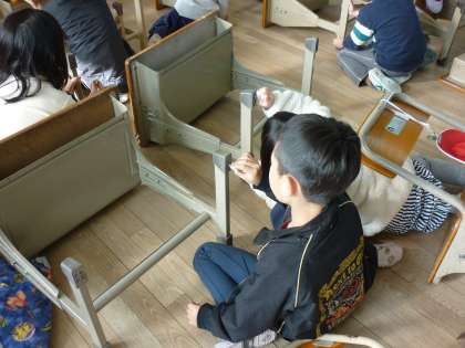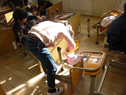 二学期の間,自分が使った机や椅子もきれいにしました。汚れが取れるとすっきりして,気持ちがいいです。