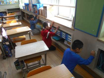 細かな傷や汚れを見つけては,丁寧にこすり落としていました。