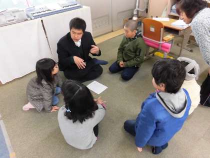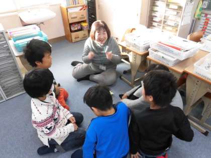 なかよし終業式をしました。全体で話をした後は,各先生の担当に分かれて,通知表をもらったり,3学期の参観日で何を発表したいか話し合ったりしました。