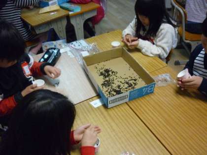 自分たちがしてもらったように,来年度入学してくる1年生にもあさがおの種をプレゼントします。みんなが育てたあさがおの種は,思っていたよりもたくさんあって驚きました。