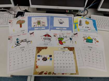凧揚げやコマ回し,餅を焼いている様子など,思い思いの絵を描いていました。