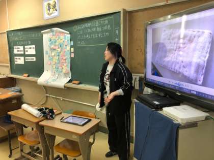 家庭科「共に生きる生活」の単元で,「家庭科の目で,わたしたちの街を見てみよう」のめあてを持って,グループ発表をしました。
