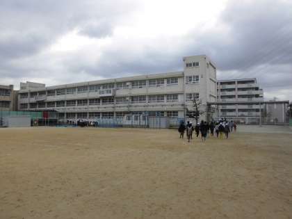 一度運動場に避難した後,津波対策として校舎の3階へ避難する訓練です。