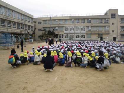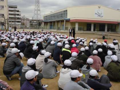 休み時間中に,地震が起き,津波警報が発令されるという設定で避難訓練を行いました。