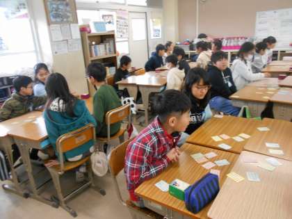 授業の合間に百人一首を行いました。