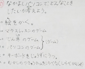 今日のなかよしパソコンは,まずみんなで3学期のなかよしパソコンでどのようなことをしたいかを話し合いました。マウスレッスンをしたいや,キーボードの練習をしたいなど,様々な意見が出ました。話し合った後は,1年間のカレンダーを作りました。