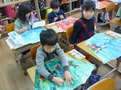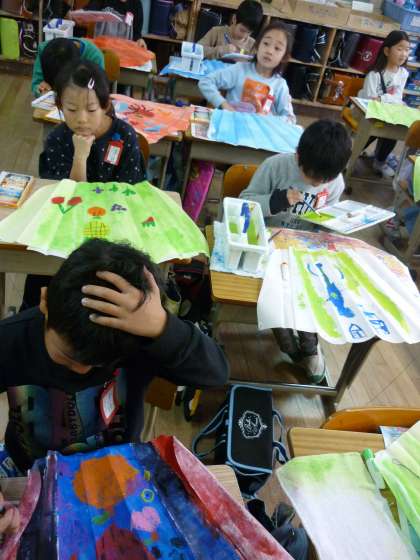 絵の具,クレパスを使って,素敵な凧ができてきています。