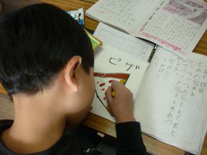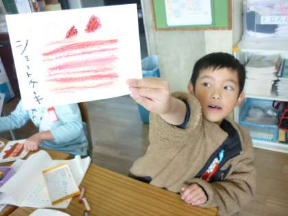 子ども園のお友だちに向けてお店を開きます。わくわくしながら書きました。