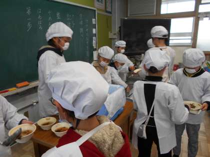 4時間目の音楽の後は,お楽しみの給食です。当番がテキパキ働いてくれたので,準備が早くできました。