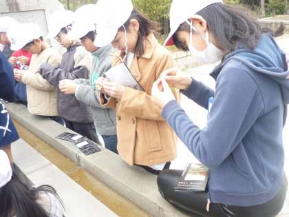 小さな竹の葉で竹船を一生懸命作りました。竹船レースが盛り上がりました。
