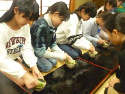 お茶をたてたり、歩き方・座り方など作法を教えてもらいました。
