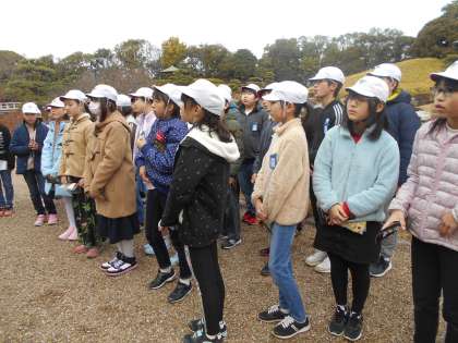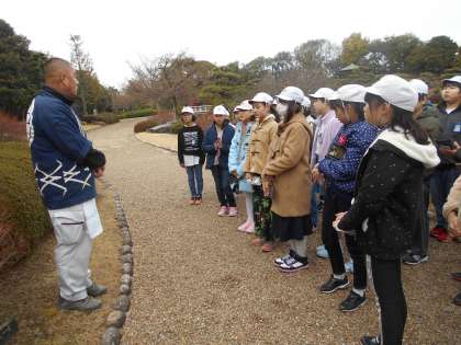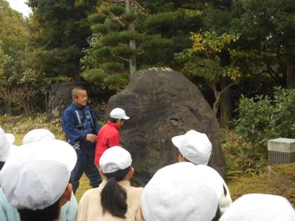 日本庭園の説明をしていただきました。動物に例えながら,楽しく説明を聞きます。