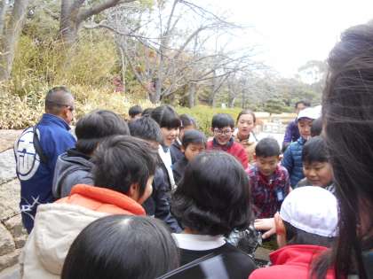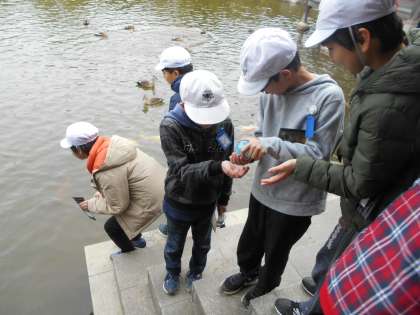 庭園の中には大きな池が。鯉や鴨にえさをあげます。