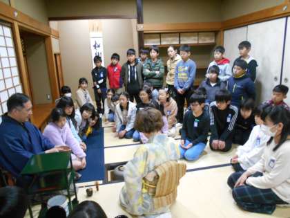 茶の湯体験です。先生のお話を聞きながら,作法を学びます。