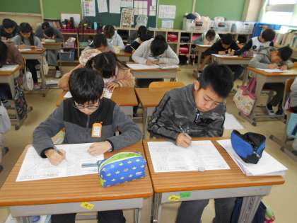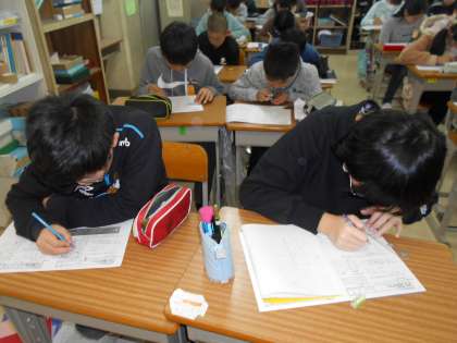 今日のテストに向けて、復習をしました。みんな集中しています。