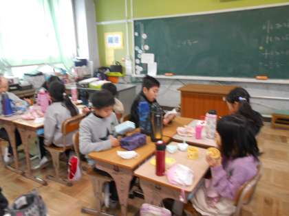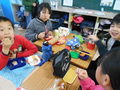 みんなおいしそうなお弁当ですね。もう食べ終わっている子もいます。
