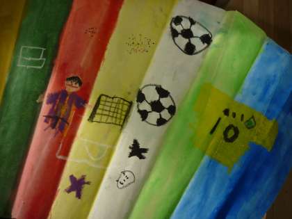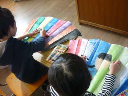 たこには,将来の夢を描きました。サッカー選手にアイスクリーム屋さん,たくさんの夢が空に揚がるのが楽しみです。