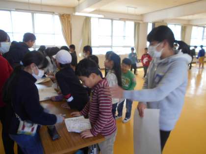 今週はわくわくフェアが開催されています。5年生の保健委員会も低学年を呼んで,手洗いチェックやクイズなど,非常によくがんばっています!