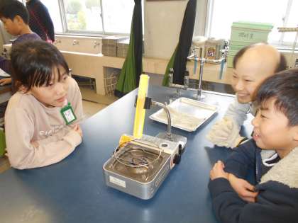 水がどのようにあたたまるか実験しました。予想外の結果で,みんな驚きの表情でした。
