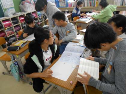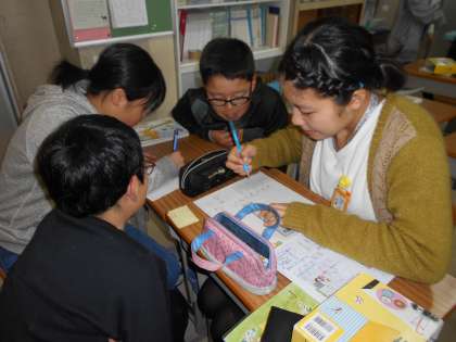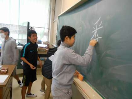 お礼の気持ちをお返しするため、漢字を教えに行きます。板書や説明の仕方を練習しました。