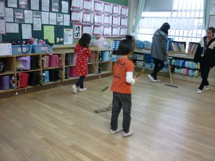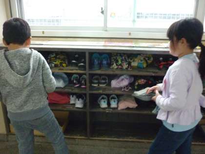 ピカピカの廊下,ピカピカの教室,ピカピカのくつ箱。自分たちが使うところは,自分たちできれいにします。きれいになると,気持ちがいいね。