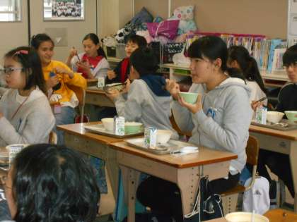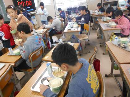 風邪もはやり始めたので,前を向いて食べます。予防をしましょう。
