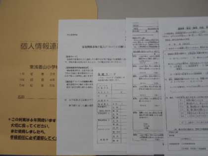 1〜4の書類は個人情報連絡袋の中に入っています。