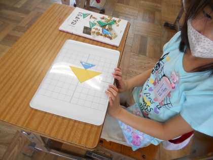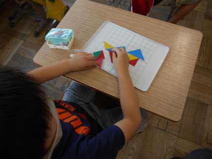 「かたちづくり」の学習です。いろいろな形を作って楽しみました。