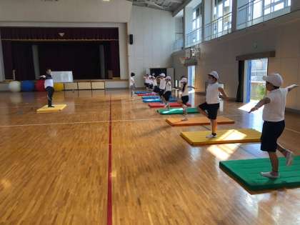 火曜日の5時間目は,体育館で,なかよし学級児童が体育をしています。