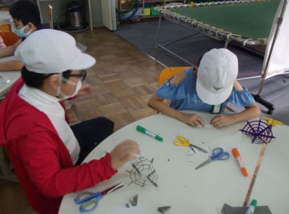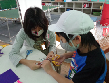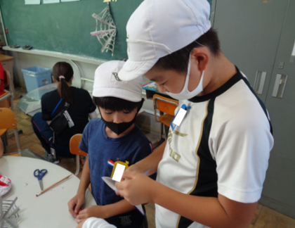 5年生と6年生に、リーダーとして活躍してほしかったので、実は事前に作り方を伝えていました。中には家で練習してきた子や、「明日はみんなに教えるから学校絶対行かなあかん!」と責任感や使命感をもつ子もいました。優しく教える姿が、なんとも微笑ましかったです。