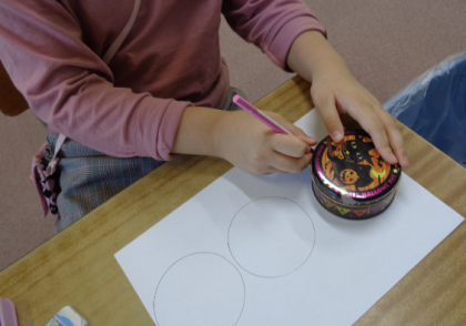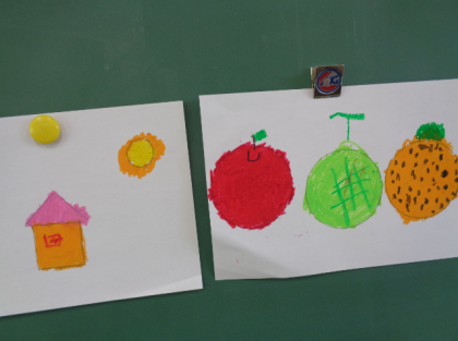 「かたちづくり」の学習です。形を写し取り、それを使って絵を描きました。