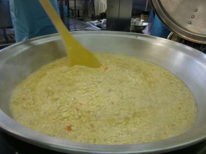 熱々の「中華コーンスープ」をおいしそうに食べるこどもたち。