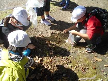 ぼうけんランドからわんぱくランドへ移動するときに,秋みつけをしました。いろいろな形のどんぐりを発見しました!