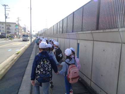 今日は1・2年生で大泉緑地公園に遠足に行きました。1年生と2年生がペアになり、ペアや班で活動しました。天気もよく、遠足日和になりました。
