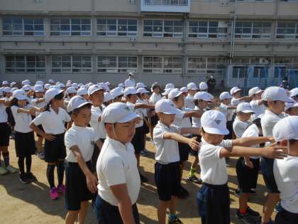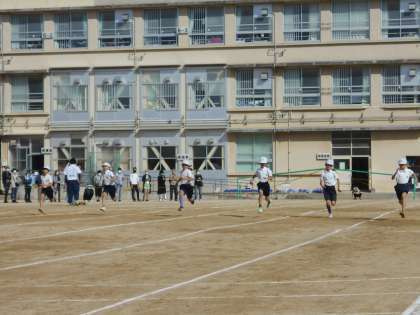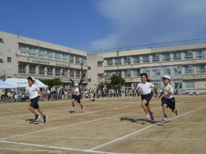 いよいよ体育参観が始まりました。まずは,徒競走です。力いっぱい走り抜けました。