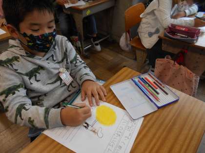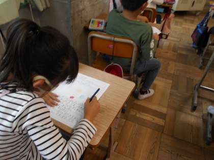 体育参観の振り返りをしました。大玉ころがしの2回戦で1位を取れたことがとてもうれしかったようです。