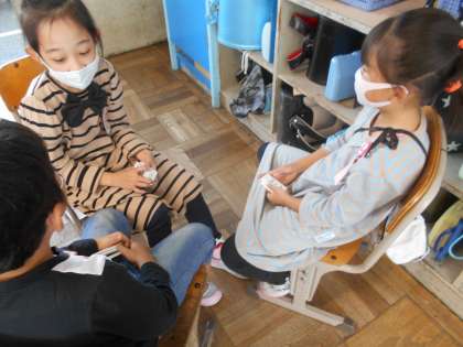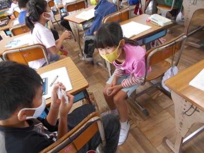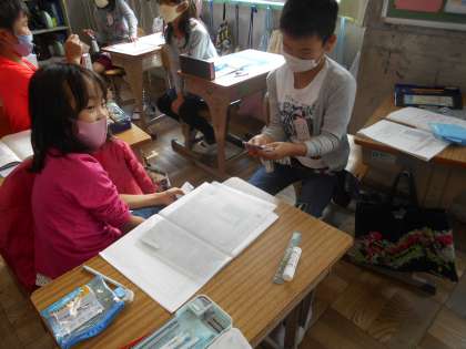 九九の学習をがんばっています。今日は3のだんの問題をペアで出し合いました。