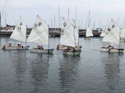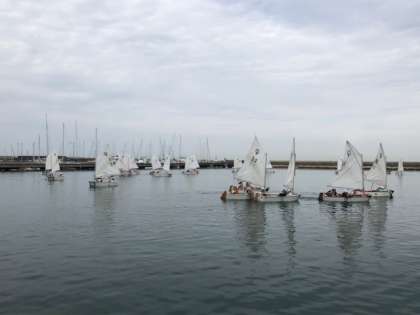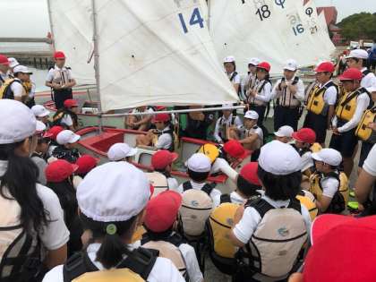 ヨットが組み立てられたので,出発しました。2人組で声をかけながら,ヨットを動かしている姿が見られました。