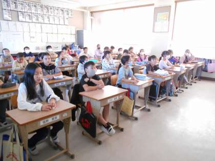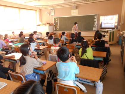 4年生は,大和川の付けかえについて学習しています。今日は大和川にとても詳しい小松先生に来ていただき,お話をしていただきました。