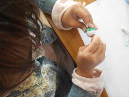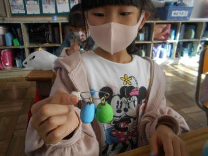 ペンや絵の具を使って色をつけると,とてもかわいく仕上がりました。