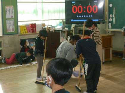 美化委員会が今日も出動しています。静かにもくもく掃除上手になってきました。
