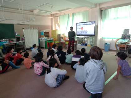 始めに,パワーポイントで「ハロウィンのお話」を見ました。