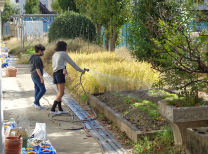 水やりをしています。冬野菜の成長が、楽しみです。