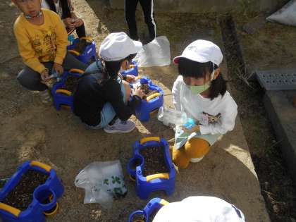 水菜の種を植えました。
