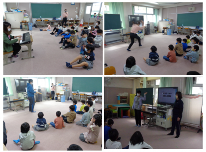 今日のなかよしタイムのテーマは、『得意なこと』です。まずは教師が、それぞれの特技を披露しました。キーボードでの演奏、歌唱(低い声と高い声に分かれて調和のとれた響きを作り出す)、バットでボールリフティング、側転とロンダートです。子どもたちは「おぉ〜!」と驚いたり、手拍子をしたり、大反響!自分の得意なことも発表したいと、やる気になっていました。「僕はジバニャンの絵が上手に描けるよ!」、「私はダンスが得意!」等、発表していました。