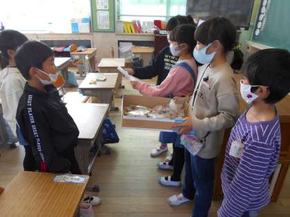 遠足でとったどんぐりに飾りをつけました。1年生全員分を作り、プレゼントしました。喜んでくれるかな。