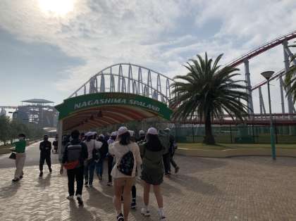 ナガシマスパーランドに到着しました。班行動で、それぞれアトラクションを楽しみます。