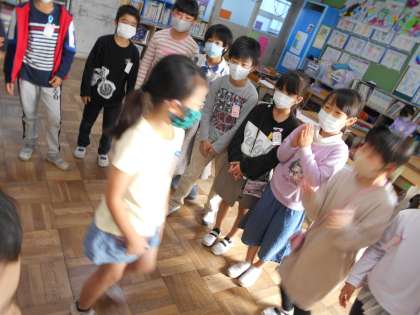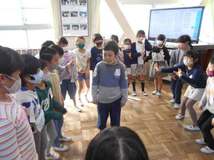 今日の特活はお楽しみ!最初に震源地ゲームをしました。