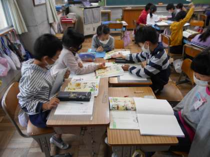漢数字を使い、算数の問題を作りました。班で解き合いました。